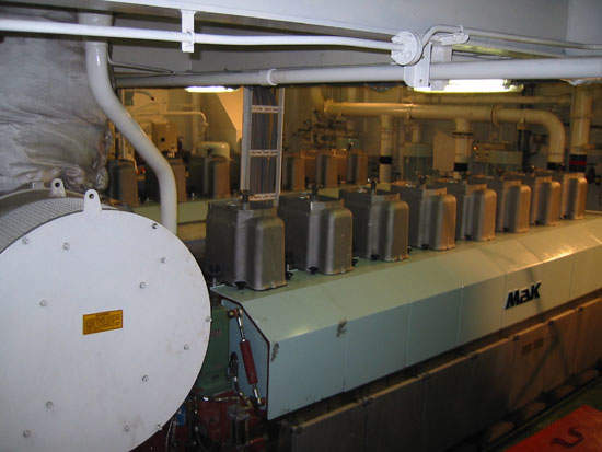 The Tarantella has two Sacke / TPK oil fired boilers with two exhaust gas economisers. There is also a shaft generator of 3,200kW connected to either of the main engines (the shaft generator is used in port during cargo operations and at sea), two MAN B&W (Holeby) 5L23/30H engines (682kW at 720rpm), and a 100kW emergency generator.