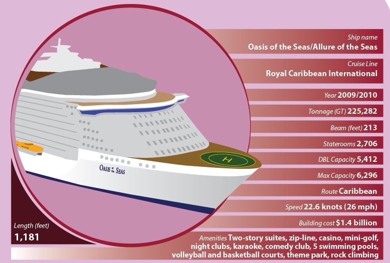 Oasis of the Seas started its maiden voyage in December 2009 and its sister ship Allure of the Seas entered service in December 2010. Port Everglades, Florida, is the home port for the two ships.
