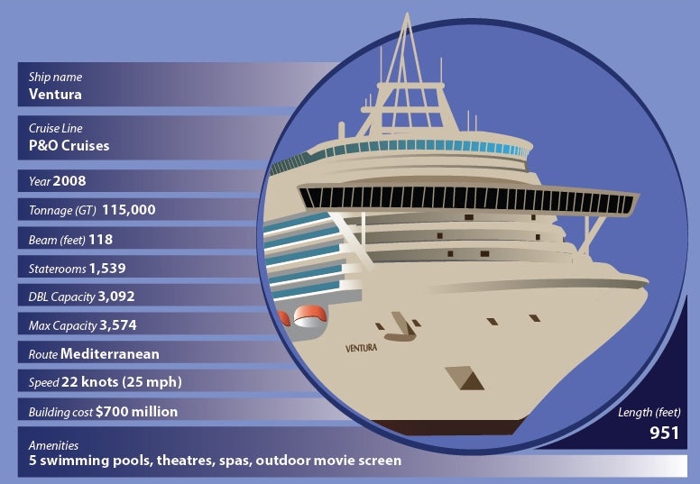 MV Ventura is a Grand-class cruise ship operated by P&O Cruises. It was built by Fincantieri and entered service in April 2008. It currently sails to Mediterranean, Northern European and Caribbean destinations.